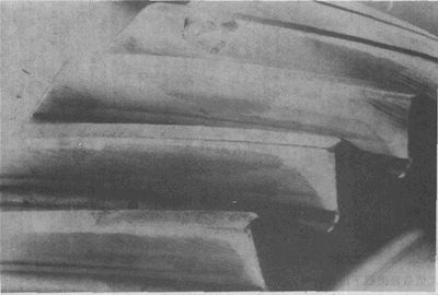 表面硬化弧齒錐齒輪大輪工作齒面的表層壓碎。在輪齒上可看到大量的與小齒輪齒面接觸線方向一緻的裂紋。一齒面上有大量材料脫落,形成一大的凹坑。 |