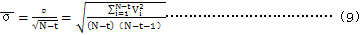 7.2.1.6按式(9)計算該列數據的标準誤差 :