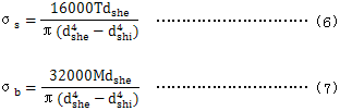 軸的名義應力按以下公式計算。公式(6)與公式(7)可應用於薄壁軸的設計,這裏比值dshi/dshe<0.9是不允許的。