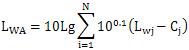 式中:Lwj——第j個頻帶聲功率級。