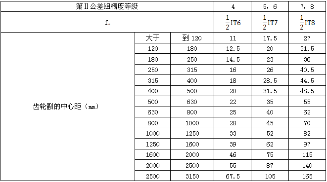 注 :一個(gè)軸向齒(chǐ)距内的齒(chǐ)向公差按軸向齒(chǐ)距查表。