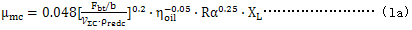 沿齧合線的平均摩擦因數μmc,可由測量[1]得到與由公式(1)估計出。雖然,局部磨擦因數在節點C接近於零,當引入公式(1)時,其平均值可用節點的參數與油溫Θoil時油的黏度ηoil大緻得出。