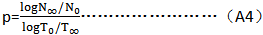 圖A1是以對數坐标的某齒輪的承載能力曲線與其整個工作壽命的載荷圖譜,圖中T1、T2、T3、……爲經整理後的實測的各級載荷,N1、N2、N3、……爲與T1、T2、T3、……相對應的應力循環次數。小於名義載荷T的50%的載荷(如圖中T5),認爲對齒輪的疲勞損傷不起作用,故略去不計,則當量應力循環次數Neq爲