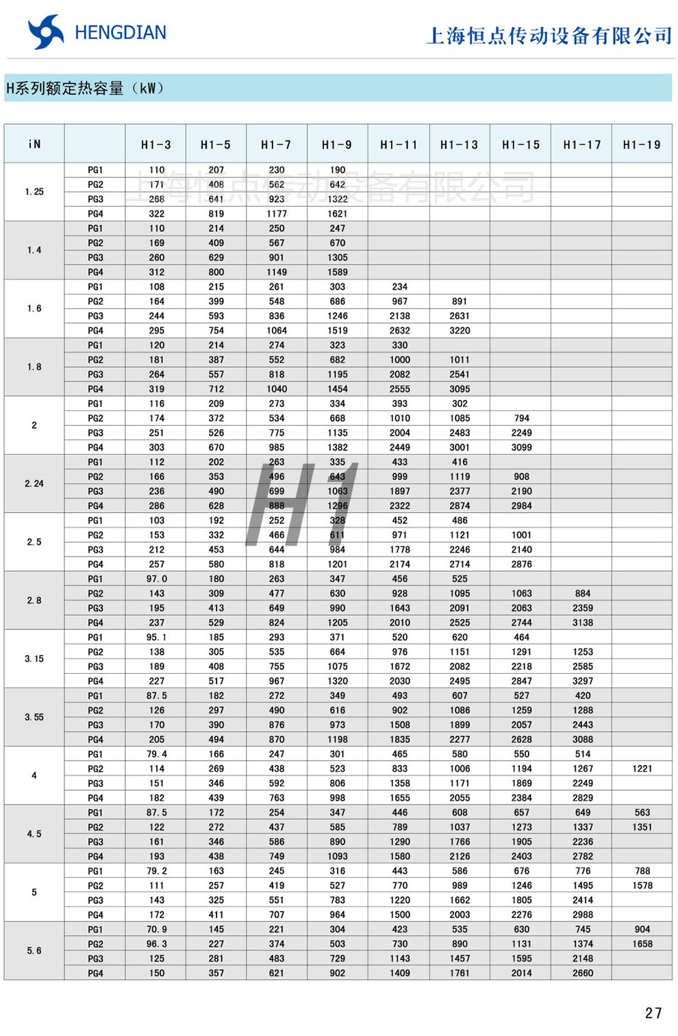9 - B系列傳動能力表 10 - H系列額(é)定熱(rè)容量