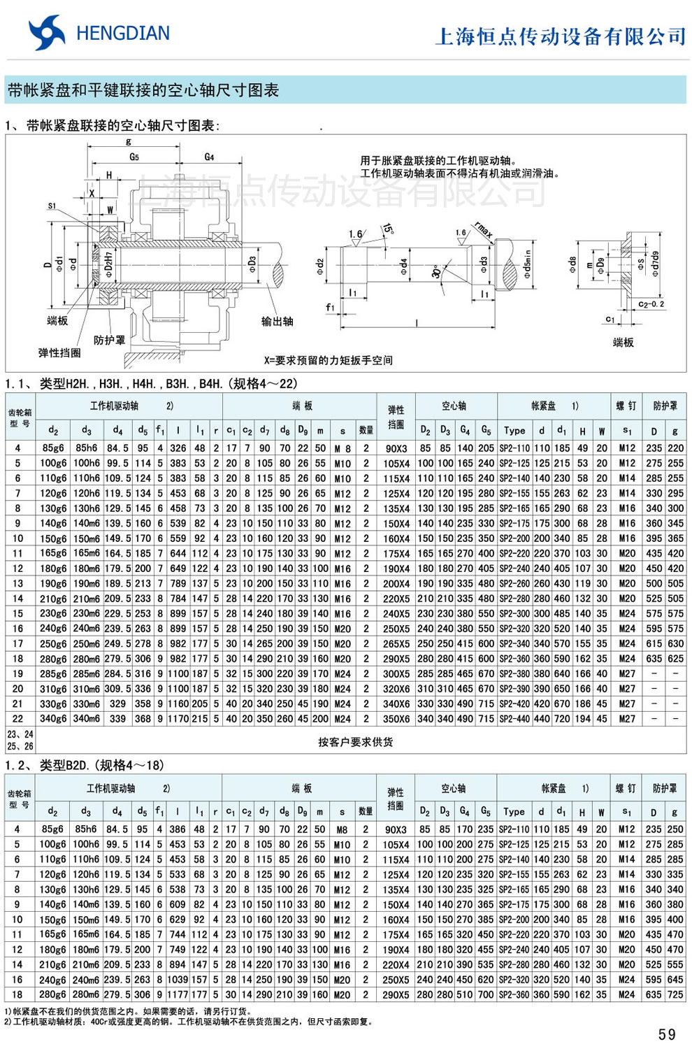 帶帳緊盤聯接的空心軸尺寸 - HB标準工業齒輪箱