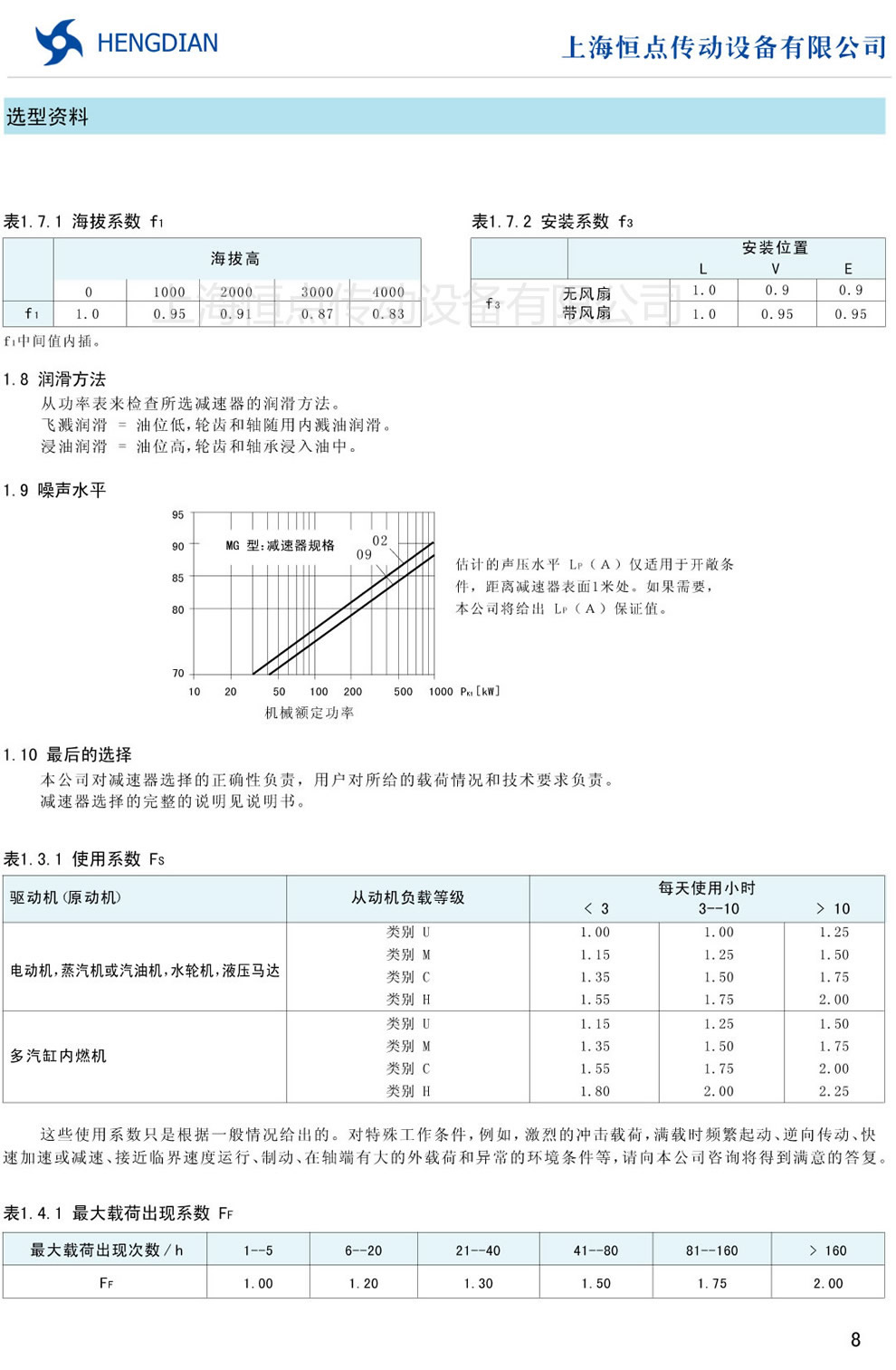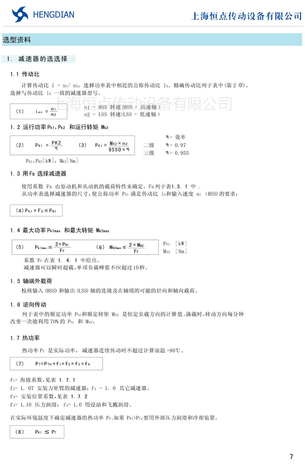 7 - 傳動能力和外型安裝尺寸/斜齒水平安裝 8 - 傳動能力和外型安裝尺寸/斜齒垂直安裝