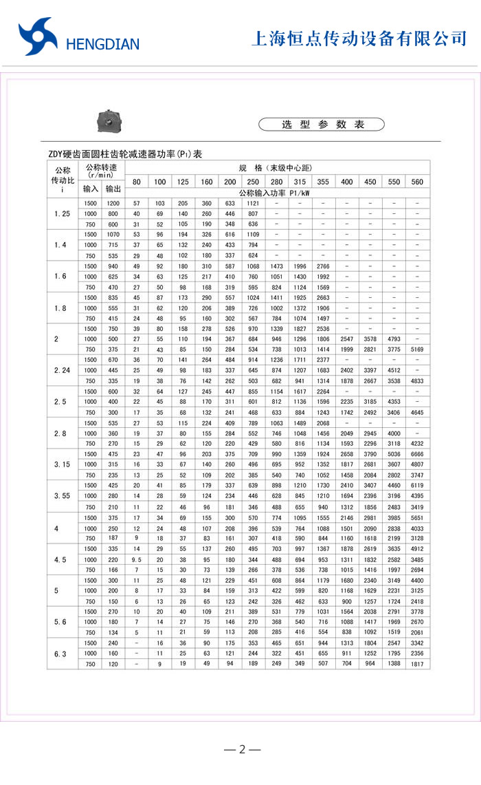 ZDY選型表 - Z系列硬齒面圓柱齒輪減速機