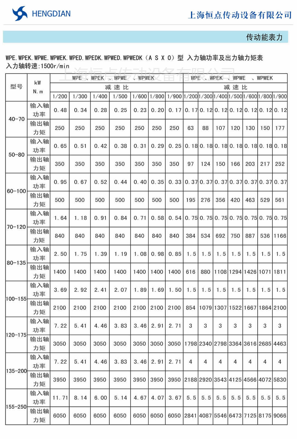 入力軸功率及出力軸力矩表. WP系列雙級蝸輪蝸杆減速機如何選型,雙級WP減速機選型指南